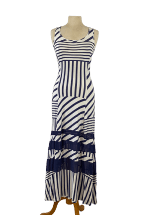 Navy and White Striped Jersey Knit Dress