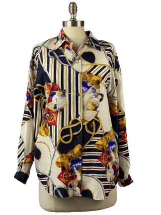 New York Studio Nautical Print Silk Blouse