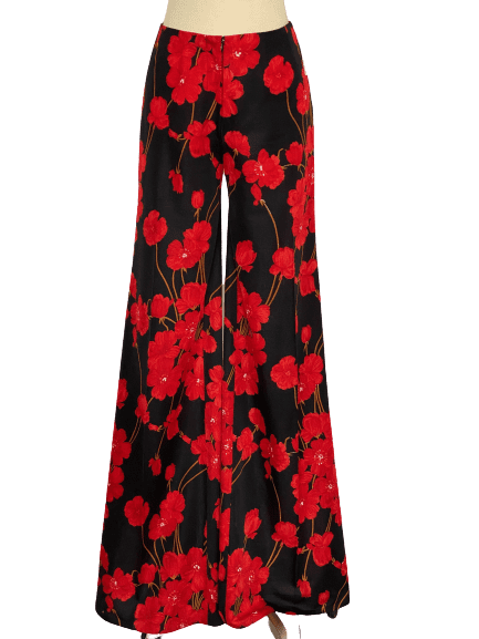 70s Vintage Red Poppy Black Flared Pants