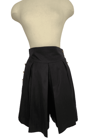 Black High Waisted Culotte with Nautical Style Gold Button Side Closures