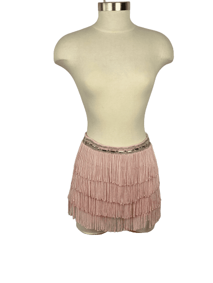 Pink Fringe Shorts with Jeweled Waistband