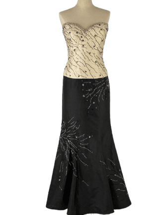 Claires Collection Ivory and Ebony Beaded Evening Gown