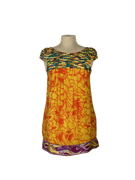 Marciano Orange and Yellow Floral Print Dress and Sequined Yoke