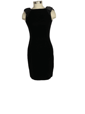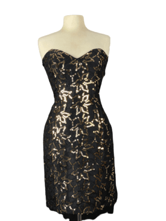 Jessica McClintock 80s Black Bustier Wiggle Dress with Gold Sequins