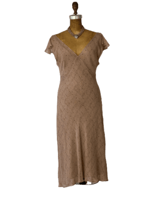 Max Studio Nude Silk Chiffon 30s Inspired Dress