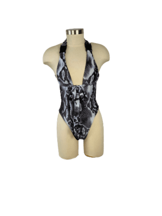 Grey Black Python Print Halter Neck Swimsuit
