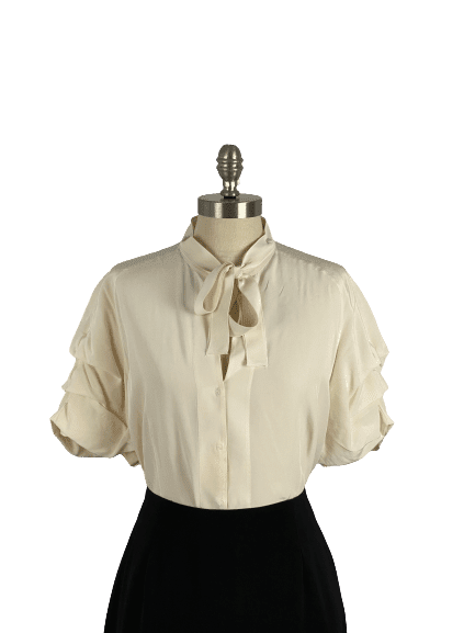 Akris Ivory Silk Pleated Raglan Sleeve Blouse
