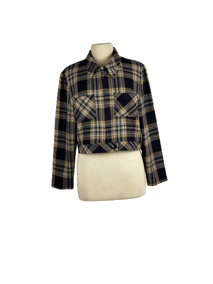 Black and Camel Vintage Plaid Bomber Jacket