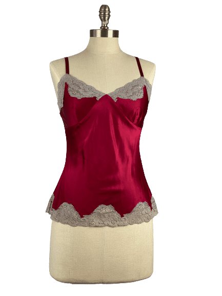 Claret Red Silk Camisole with Taupe Lace Trim