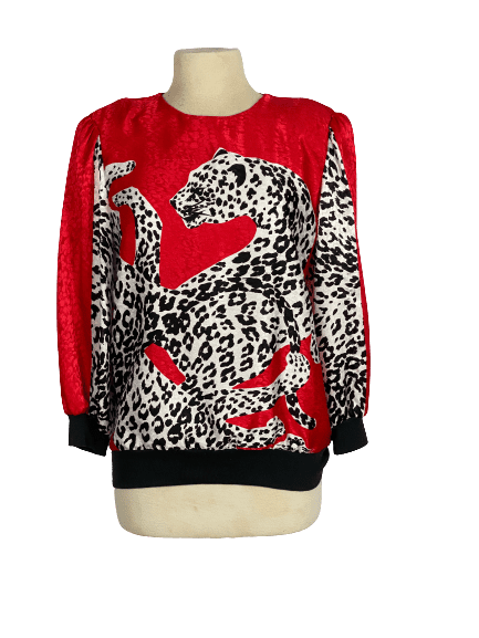 80′ Red Polyester Blouse with Black and White Cheetah Print