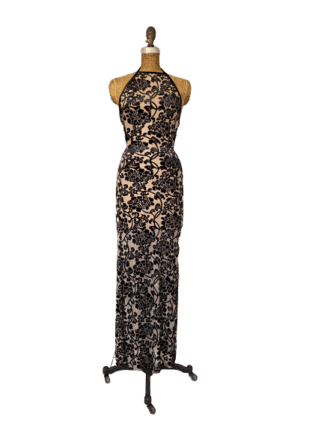 Vintage Maxi Dress In Nude Stretch and Devore Black Velvet Foral
