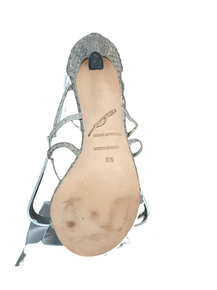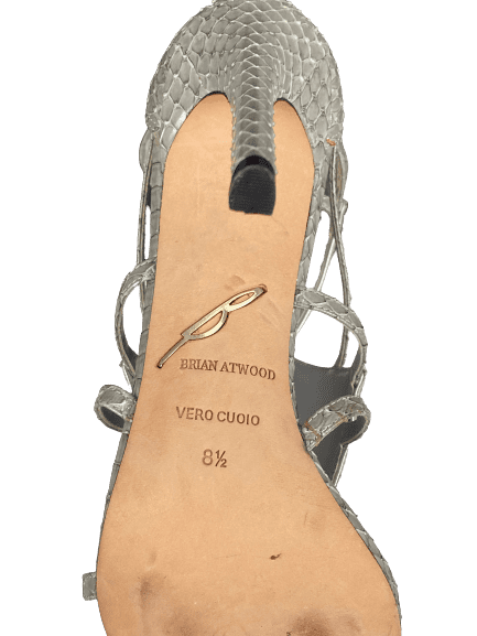 Brian Atwood Grey Snakeskin Strappy Stiletto Sandals
