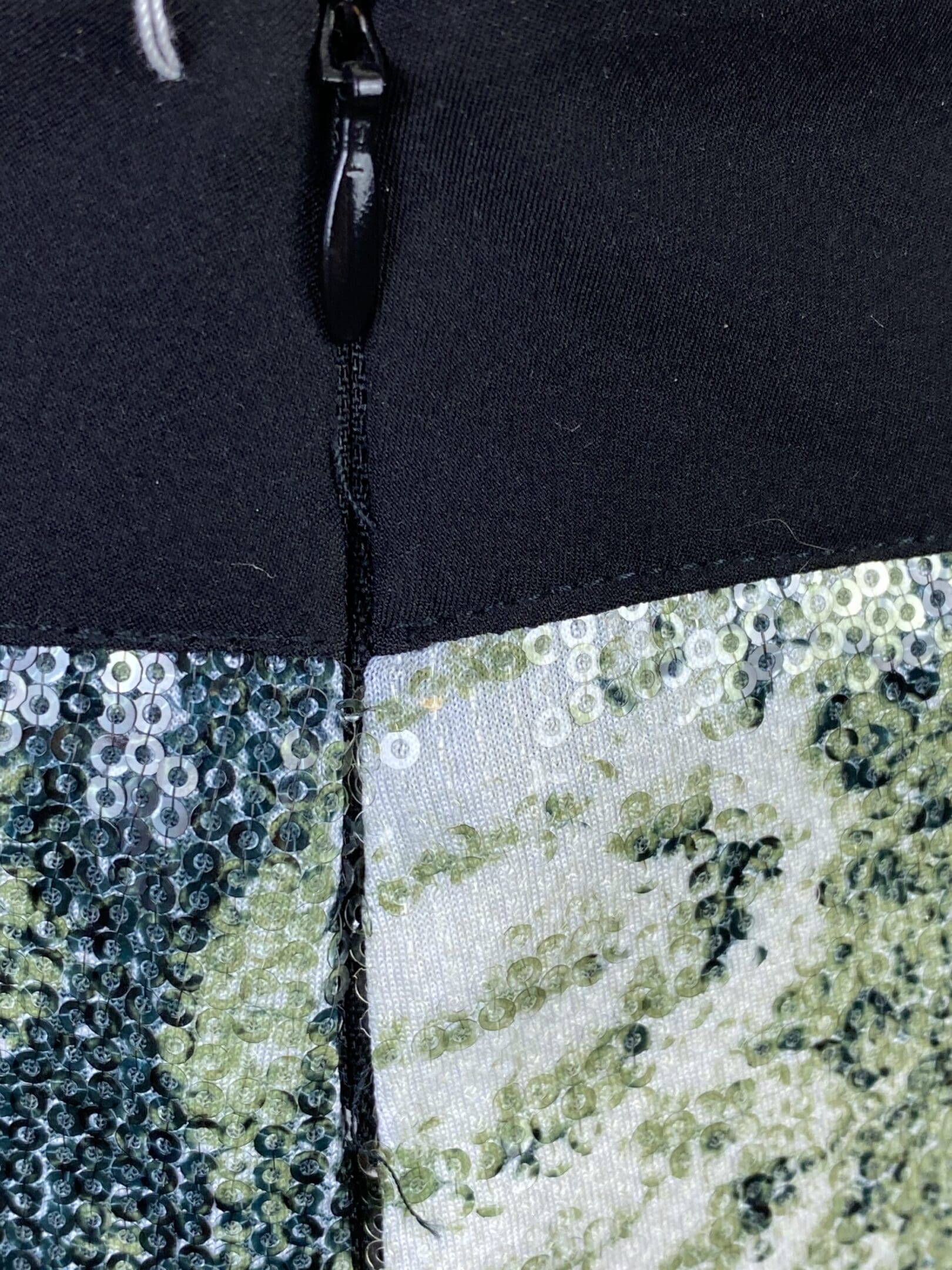 Green and Cream Snake Print Sequin Stretch Mini Skirt