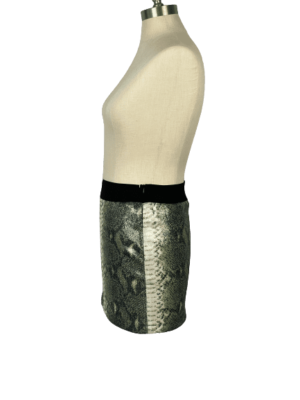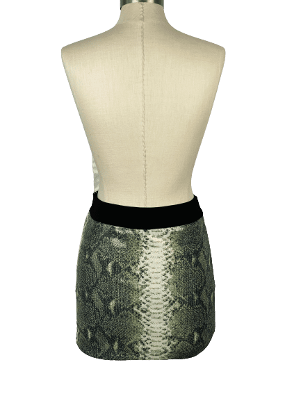 / Green and Cream Snake Print Sequin Stretch Mini Skirt