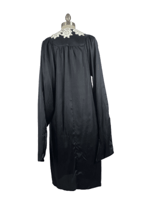 RBG costume black justice robe / zip up front /puffy sleeves with drape , crochet collar .