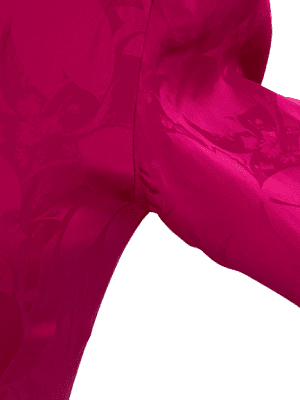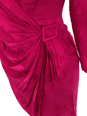 80’s cerise pink silk surplice bodice buckle detail with shoulder pads. Tear under the left armpit.