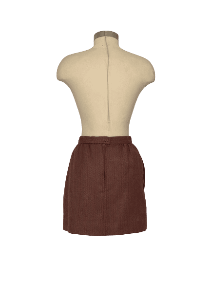 Vintage wool blend burgundy mini skirt suit. . Useable hidden pockets on both jacket and skirt. Loop button closure on jacket. Good vintage condition.  ILGWU tag. Made in the USA. .